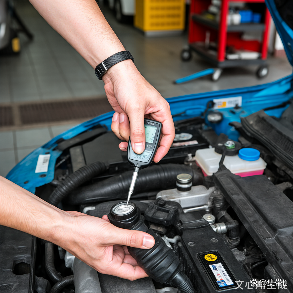 冷却液需每2年/4万公里更换,冰点需低于当地最低温10℃。使用冷却液测试仪检查冰点,不足时补充同规格防冻液。定期清洁水箱水垢——实测显示,水垢厚度超过1mm会导致散热效率降低40%,引发“开锅”风险。检查散热器、水泵、风扇状态,确保无渗漏、异响。