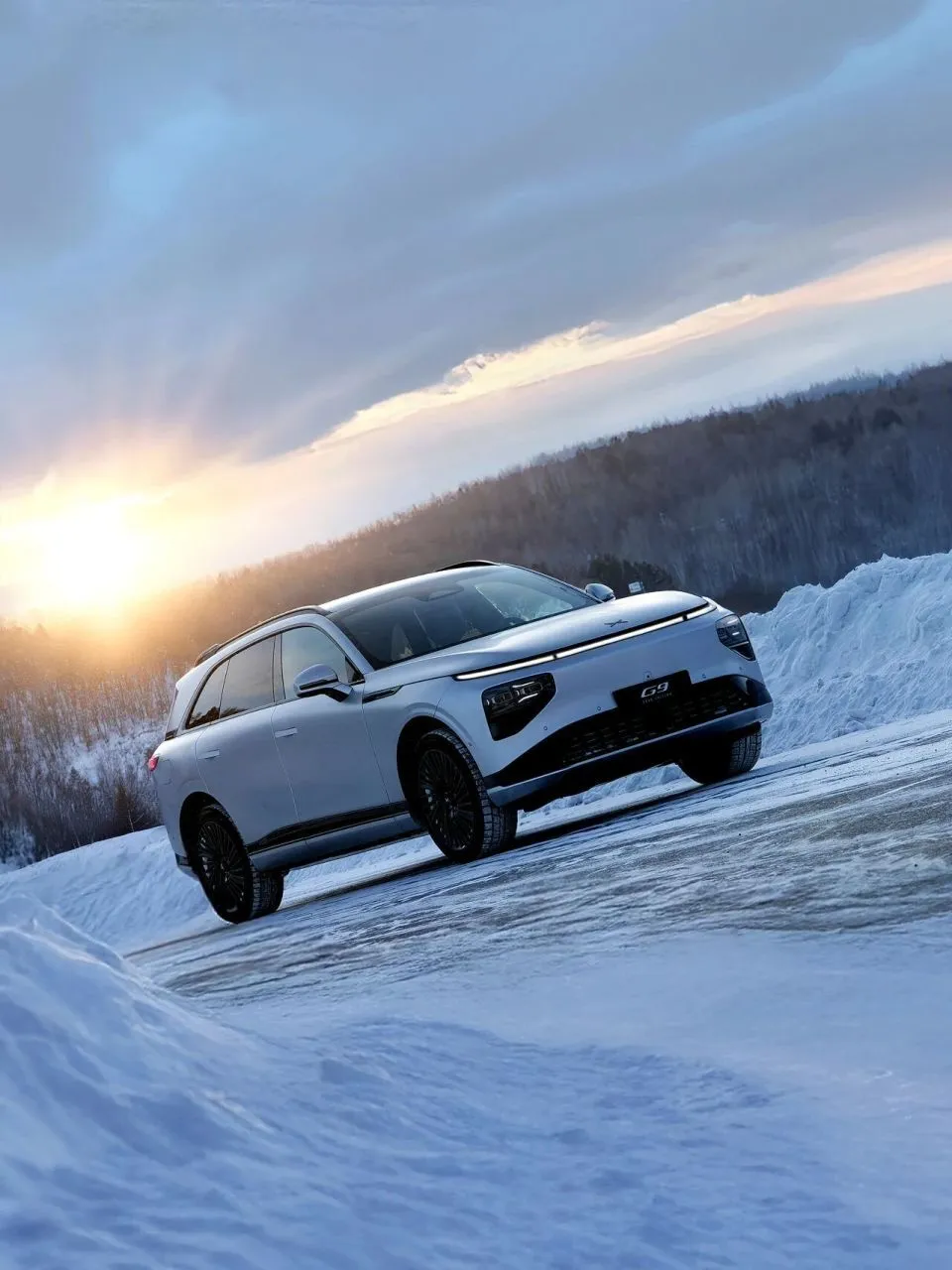 首先,这位“预言家”的卖相,走的是一种“科技从容”风。外观延续了G9家族那种简洁而富有未来感的设计,线条流畅有力。这次主打的“月光骑士”限定版,那种哑光银的车漆,在雪地官图里确实显得格外优雅、沉稳,有种不张扬的高级感。它不像理想L9那样追求居家的极致温暖,也不像问界M9那般强调庄重的气场,小鹏G9的设计语言更偏向于都市精英的审美——理性、精致,且充满科技暗示。