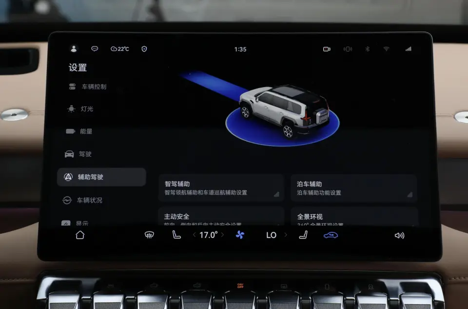 智能驾驶方面,猛士M817 Hero配备了包括1颗192线激光雷达、11颗摄像头、3颗毫米波雷达和12颗超声波雷达在内的27个感知硬件,搭载华为乾崑ADS 4.0辅助驾驶系统,能够实现高速、城市领航辅助以及多场景泊车辅助功能。