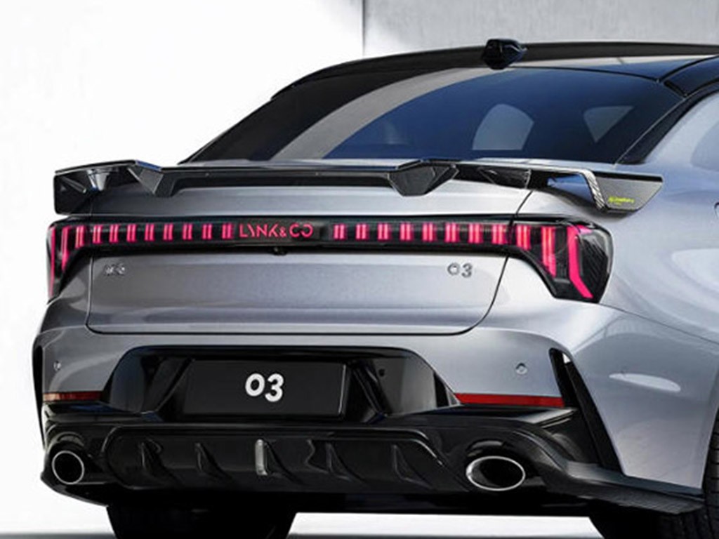 车尾部无疑是此次新款领克03的重点,毕竟名字里带“大尾翼版”了,所以大尺寸的尾翼肯定得安排上。据悉,该尾翼是碳纤维的,并且可以支持0°/8°/16°三段可调,以用于满足不同行车状态下的车辆稳定性。