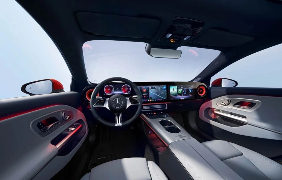 最让老王我印象深刻的是这车的设计。经典的奔驰轿跑造型,流畅的溜背线条,配上电动车特有的封闭式格栅,既保留了奔驰的优雅气质,又增添了不少科技感。特别是那个会发光的星辉前脸,晚上开出去辨识度极高,对年轻人来说确实很有吸引力。