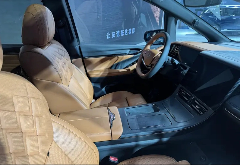 进入车内,向往M8宗师提供了“马会庄园”红棕与“烟波浩渺”浅灰两种内饰风格,大面积软质材料包覆营造出豪华氛围。双辐式多功能方向盘、12.3英寸全液晶仪表和14.6英寸(或15.6英寸)中控多媒体屏构成了驾驶区的信息交互核心。新车采用2+2+3的7座布局,第二排航空座椅功能丰富,高配车型更升级为双零重力座椅,支持18向调节、16点式按摩,靠背最大可调至166°,配合一键SPA功能,将乘坐舒适性推向新高度。激光雷达版还配备了可折叠收纳小桌板和5英寸扶手屏,兼顾了商务与家庭出行场景。
