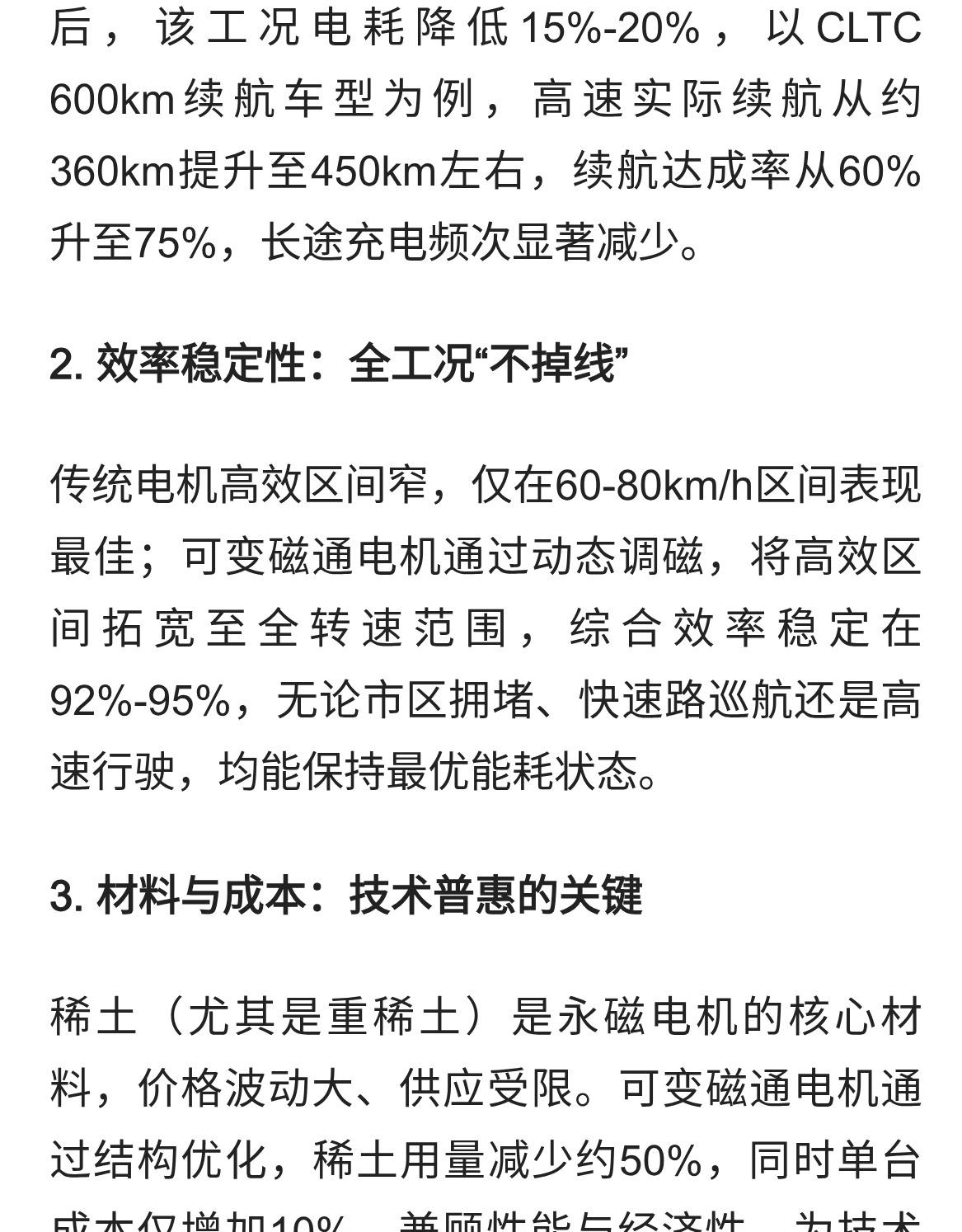 这套技术不光是省电,还捎带手干了件大事——减重。因为结构优化,稀土用量直接砍了一半,电机本体轻了10到15公斤。车轻了,电耗自然更低,操控也更灵活,刹车距离还能缩短一点。关键是,稀土用得少了,供应链不容易被“卡脖子”,成本反而稳住了。