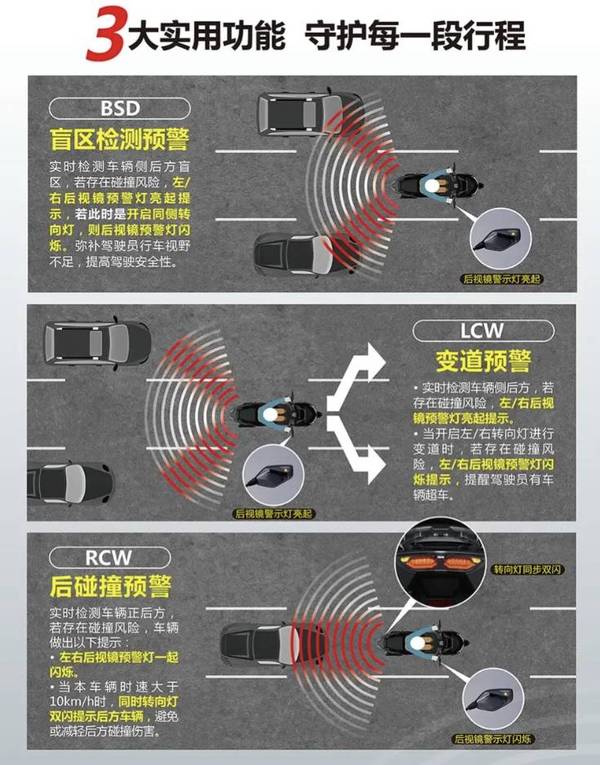 最后是智能化——NWT 上的盲区监测、运动相机互联等功能,确实是同级里少见的配置,尤其运动相机联动,解决了戴手套按键难按、录像耗电的问题——这类细节真的对日常骑行体验提升明显。
