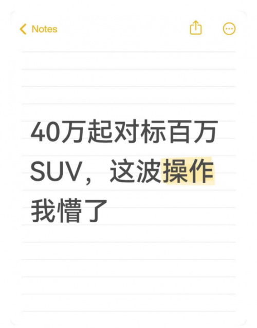 不过话说回来,价格定在40万,既避开了50万+的豪华SUV扎堆区,又盯着它们的市场。