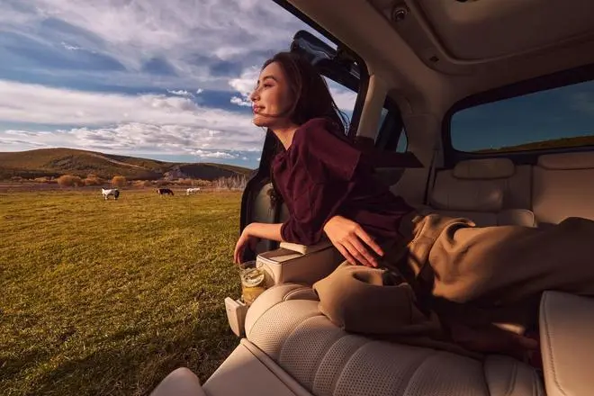 空间布局方面,X9超级增程版延续了纯电版的灵活设计。采用"2+2+3"的七座布局,第二排配备双零重力座椅,支持多向电动调节,扶手内侧集成功能按键,操作便捷。第三排座椅支持电动折叠和翻转收纳,可实现4/6比例灵活放倒,后备厢容积可在不同场景下自由变换,完美兼顾家庭出行与商务接待的双重需求。