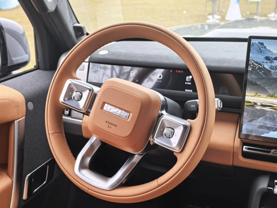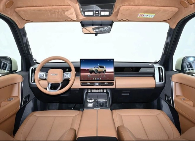 外观和配置上,新款的核心特色就是“硬派方盒子+实用配置拉满”,兼顾颜值与实用性。外观采用硬朗方盒子造型,线条凌厉有质感,摆脱了传统硬派SUV的笨重感,多色车身可选,既有硬派气场,又不失家用的简约大气,比方程豹钛7更显灵动,比福特智趣烈马更贴合家用审美。车身长宽高最高达5055mm,轴距2910mm,5座布局,空间表现出色,不管是载人还是放户外装备都够用。