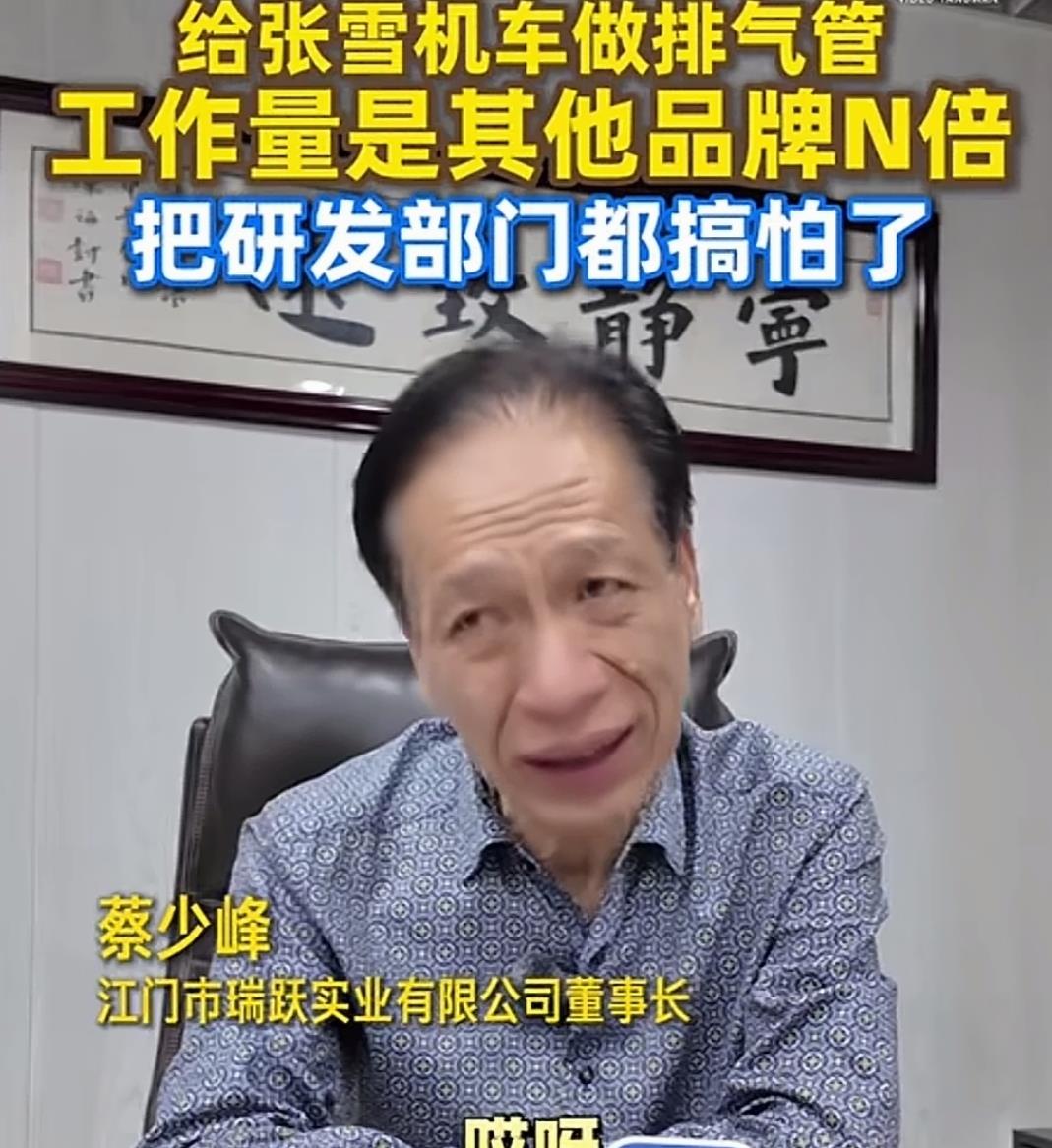 2016年重庆摩博会上,29岁的张雪找到江门瑞跃实业的展位,递上一张名片。蔡少峰接过名片,私下问了身边一圈人,没人认识这个名字。这个小伙子开口就要赛道级排气管,蔡少峰直接问他:“我东西很贵,你敢用吗?”张雪只回了一句:“为性能,不计成本。”