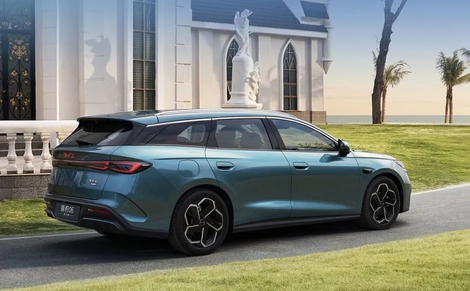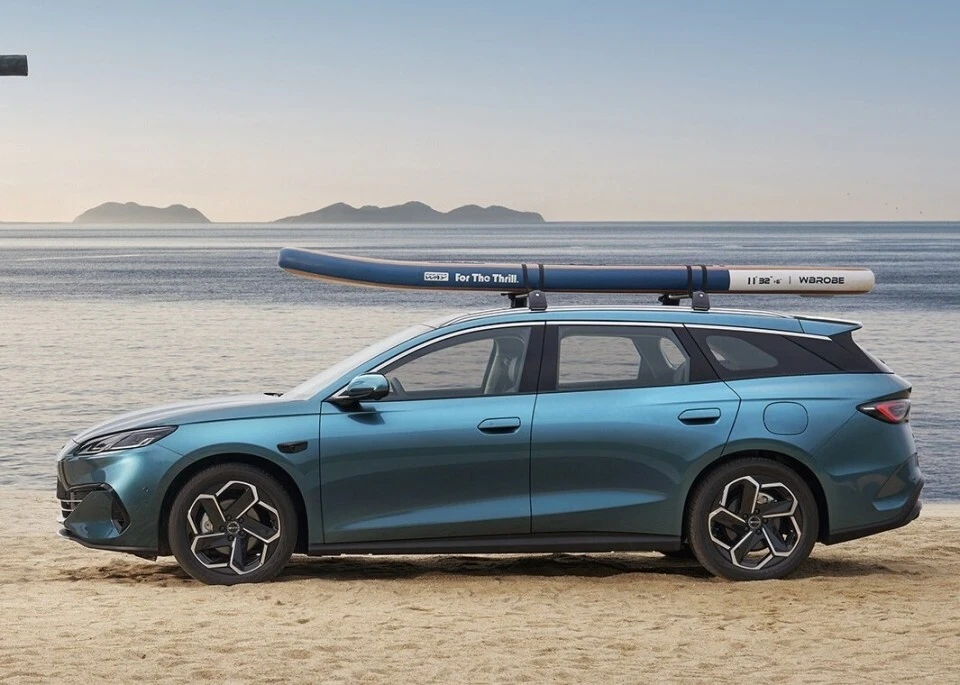 车身侧面是旅行版的核心亮点,优雅流畅的旅行车身段格外吸睛,车顶线条在B柱之后不会像轿车版那样快速下滑,而是平缓延伸,不仅让车尾更显饱满,还能大幅提升后排头部空间和后备厢容积,车尾微微下沉的设计,还能降低风阻系数,实用又美观。4850/1890/1505mm的长宽高搭配2790mm轴距,空间表现越级,再加上极汐绿等六款配色可选,不管是户外露营还是日常通勤,开出去都倍有面。