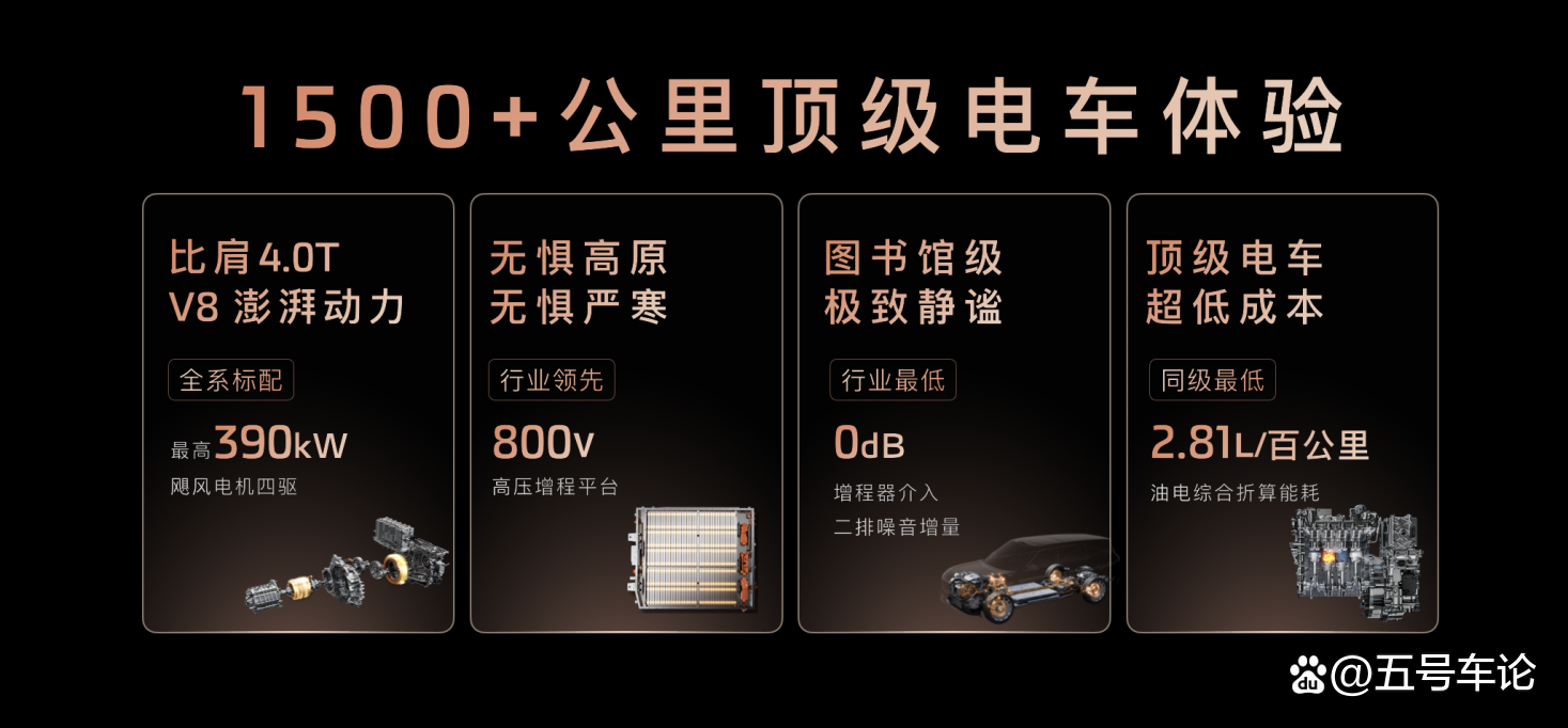 智己LS9全系标配800V高压架构与双电机矢量四驱系统,综合功率390kW、扭矩670N·m,零百加速跻身4秒级阵营,带来媲美燃油4.0T V8发动机的澎湃性能。新车采用“恒星超级增程”技术,彻底告别传统增程车在亏电状态下性能受限的短板,实现1500公里全程性能一致,无论是高原、极寒还是复杂地形,都能保持超跑级的动力输出。与此同时,ERNC 2.0主动降噪系统有效消除增程介入的噪音干扰,车内静谧感达到图书馆级水准。CLTC纯电续航402公里,综合续航可达1508公里,综合油电能耗低至2.81L/100km,为用户带来电车般的使用成本。