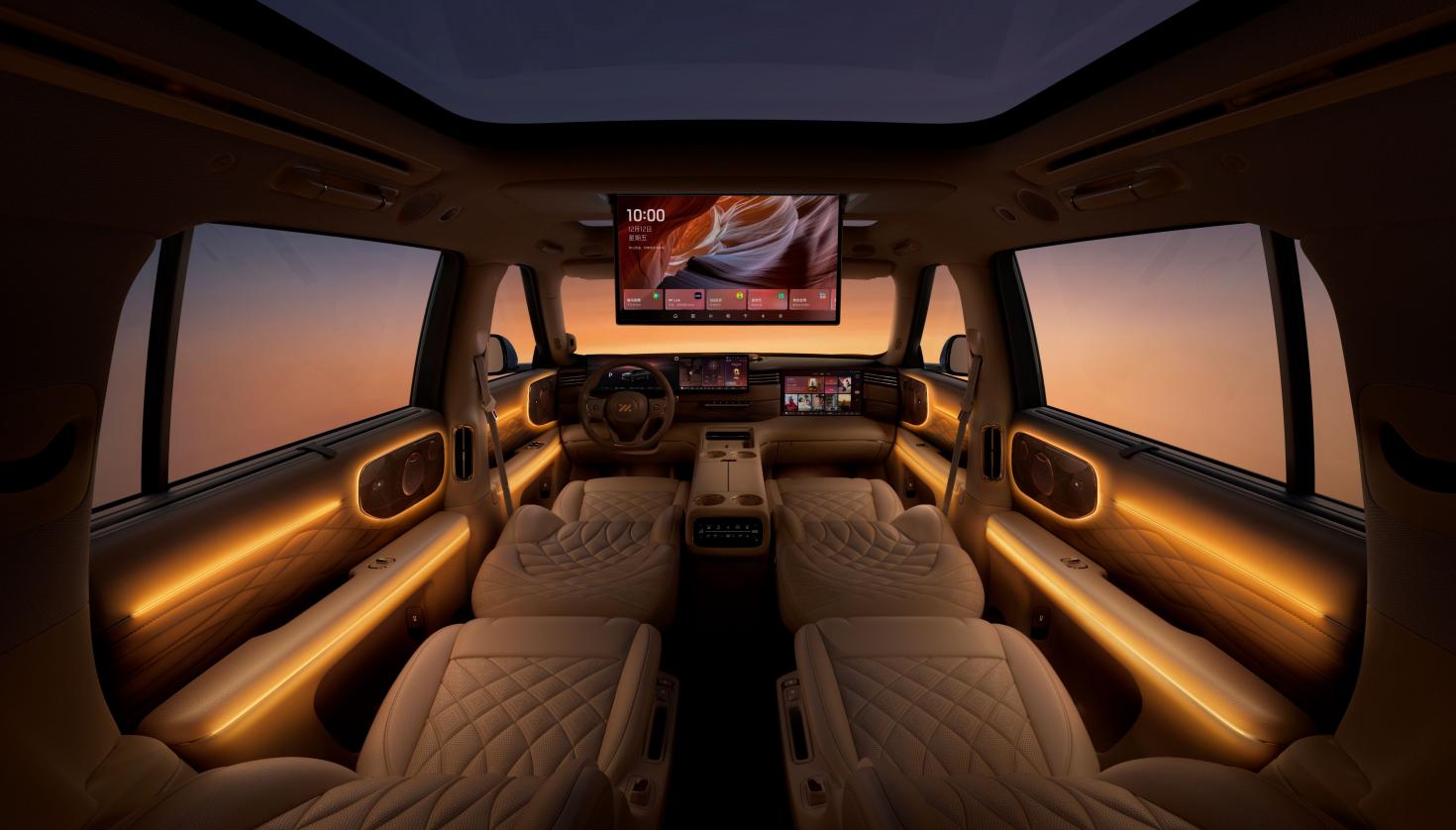 在智能豪华体验方面,智己LS9是首款搭载世界顶级音响品牌B&O的中国品牌车型,并采用全球首创4D机械按摩座椅,按摩强度相当于气动按摩的七倍,带来高端SPA级的乘坐享受。车内瞬净新风系统每小时可实现100次换气,优于医疗级建筑标准,保障每一口呼吸的洁净。新车还配备同级独有的“野奢户外套装”,支持24小时热水供应,适配家庭露营、宠物出行及骑行场景。此外,21.5英寸4K后排娱乐屏、12.3L双开门冰箱以及全车零重力座椅等配置,为用户提供全方位的豪华体验。