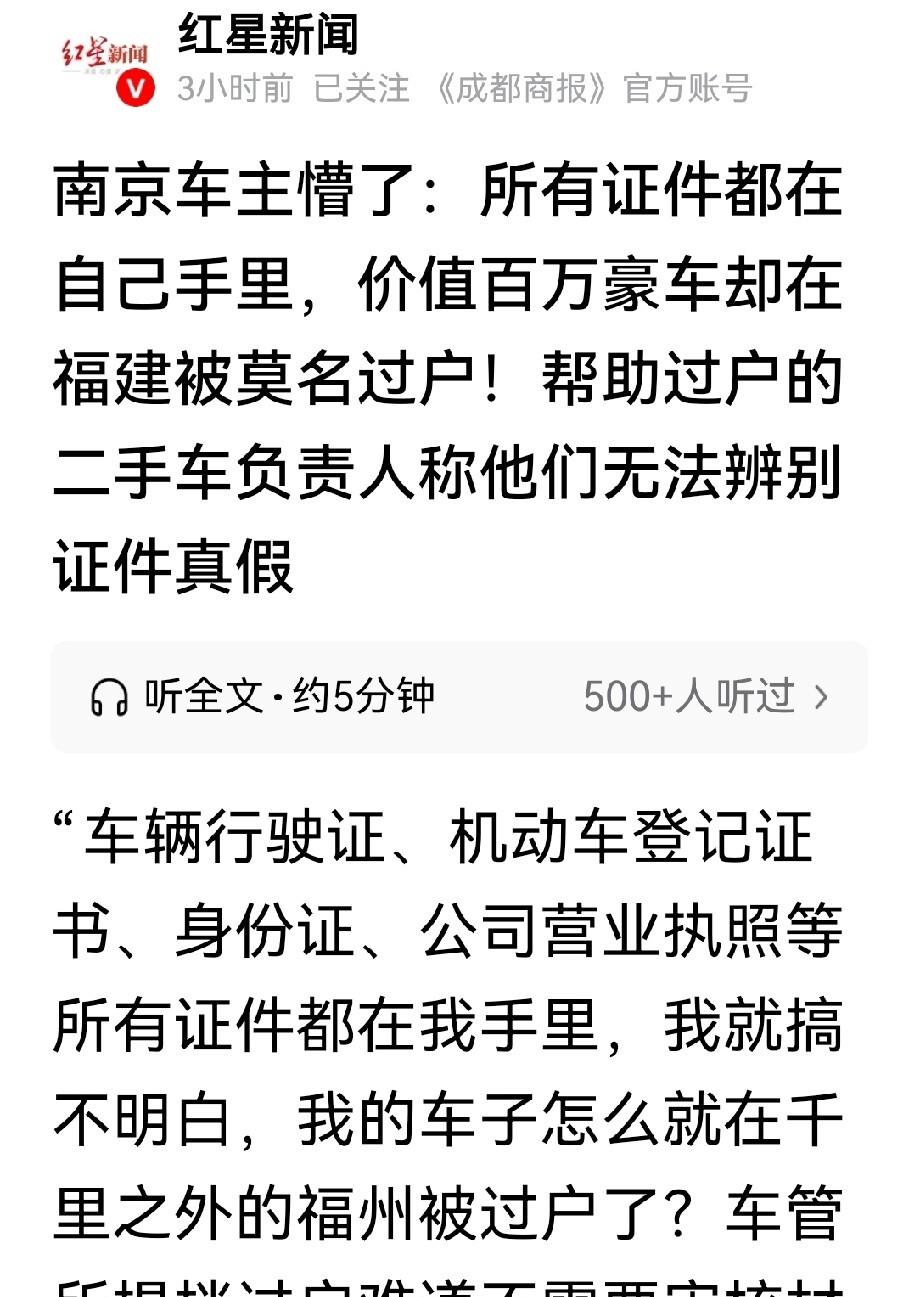 网上有人评论说:“事出反常必有妖,就看谁才是真正的妖。”这话说得在理。证件全在手里,车却在千里之外被过户,这中间如果没有内鬼配合,单靠几个假证就能轻松蒙混过关,那全国的车主是不是都得提心吊胆过日子?