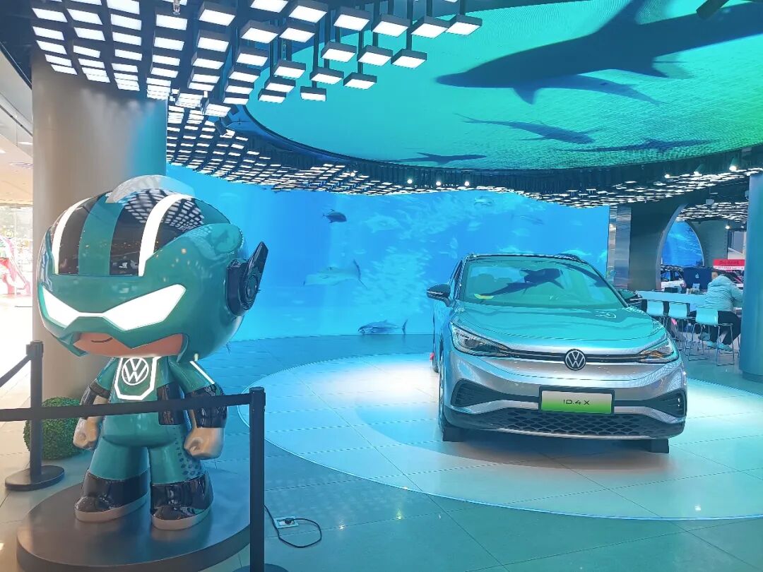蔚来乐道门店的春节布置已经就位,烘托出喜庆的氛围。大众ID展厅里蓝光流转,与大屏幕播放的海洋画面一同展现了电动车的科技环保。长安旗下阿维塔和深蓝两大品牌则将展示店进行了打通,两组客户正在销售人员陪同下看车。