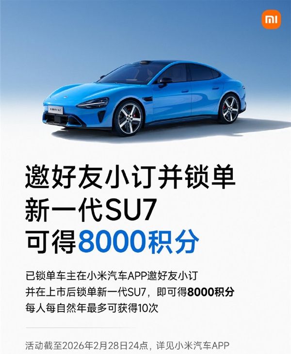 除了想掏空你的钱包,小米还想榨干你的人脉。他们搞了个车主拉新计划,老车主邀请好友买新一代SU7,要是成交了能拿8000积分。