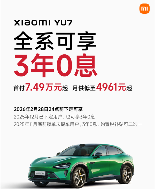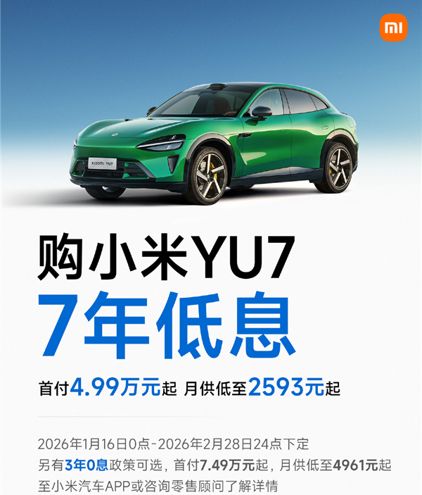 这套组合拳分两路。第一路叫长线钓大鱼,也就是全系YU7和第一代SU7现车,能搞最高7年、年费率1%的方案。