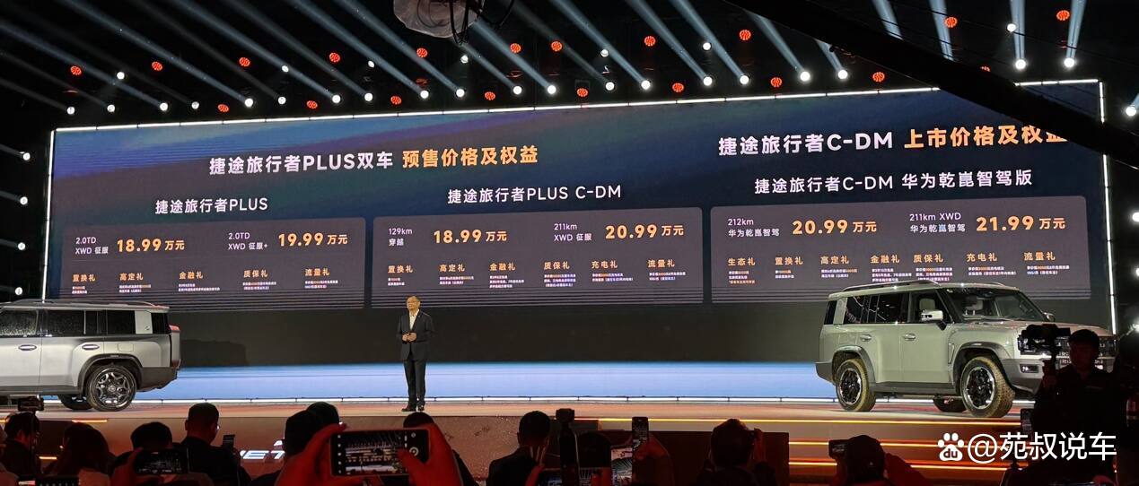 2026年4月9日,捷途汽车" XWD技术体验日"在安徽芜湖龙山露营地召开。活动现场,捷途两款方盒子,捷途旅行者PLUS与捷途旅行者PLUS C-DM双车开启预售,其中捷途旅行者PLUS推出2款配置车型,预售价18.99-19.99万元。捷途旅行者PLUS C-DM推出4款车型,预售价18.99-21.99万元。两款车型覆盖了纯油、插混两种动力结构,座椅布局上提供5/7座的座椅布局,捷途旅行者 PLUS C-DM还有两款华为乾崑智驾版可以选择。