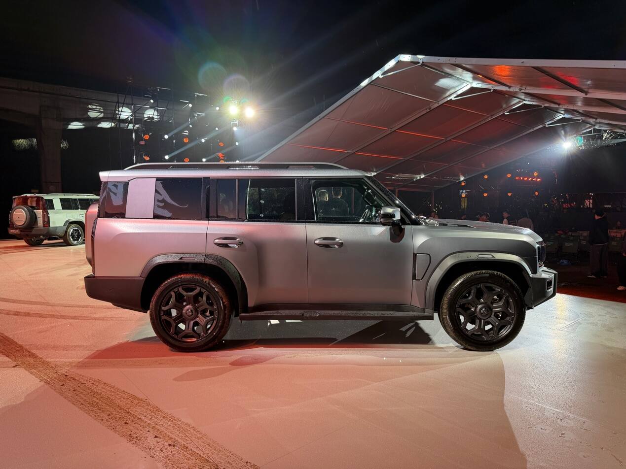 外观方面,两款新车保持了旅行者的设计风格,依旧是硬朗的方盒子造型,车头采用了大量的正方形元素,方形的矩阵大灯、方形的中网突起融合了JETOUR的英文LOGO,异色的前包围也是硬派车型常用的设计,开启智驾后前包围方形灯组会切换为蓝色。