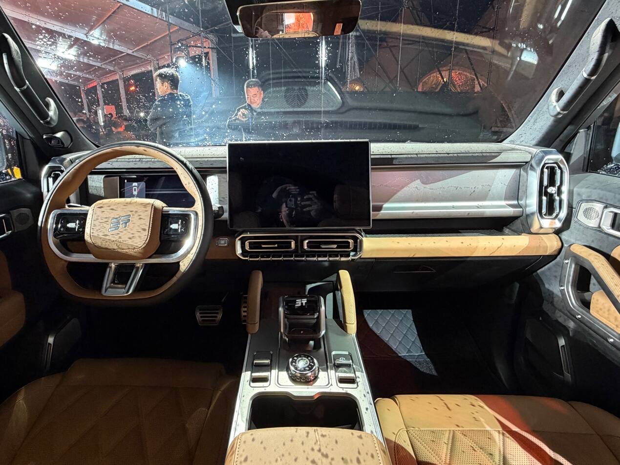 内饰设计依旧是硬派的风格,保留了大量的实体按键,盲操作更加方便。屏幕方面采用15.6英寸中控屏+10.2英寸的液晶仪表的组合,车机使用的是高通8155芯片,内置TOUR OS 3.0智能座舱,支持科大讯飞星火AI语音大模型。舒适功能上前排座椅支持加热和通风,主驾8点按摩,副驾一键女王座,二排座椅加热,二排小桌板等。