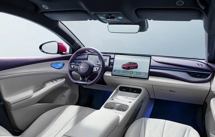内饰主打科技感与实用性,细节优化更显贴心,操作起来简单易懂。整体维持比亚迪家族式设计,全系标配15.6英寸中控屏+10.25英寸全液晶仪表,搭配三辐式多功能方向盘,符合当下新能源车型的主流审美,操作流畅不卡顿,上手毫无难度。最实用的升级莫过于改为怀挡机构,还重新设计了中央通道区按键,整体布局更协调,也释放了更多储物空间,日常放手机、水杯都很方便。车内配备DiLink 150高阶版智能座舱,支持手车互联,语音控制精准灵敏,导航、开空调一句话就能搞定,再加上细腻的内饰材质和精致做工,质感完全不输同级别竞品,久坐也不会觉得压抑。