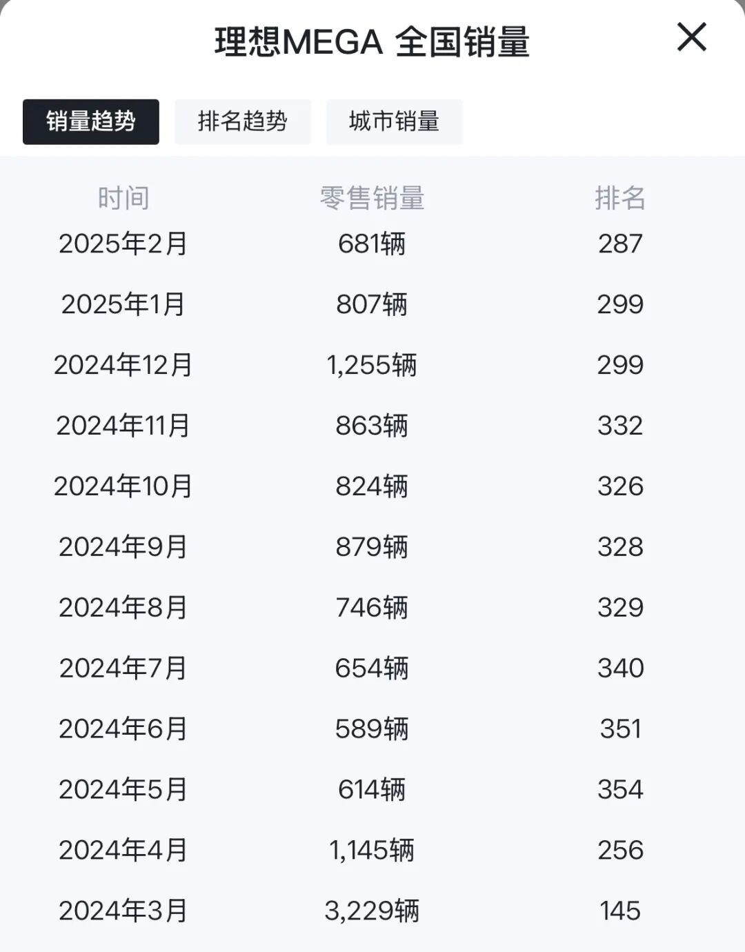 可想而知,MEGA去年的销量不会太好。2024全年,MEGA的销量为10798辆。