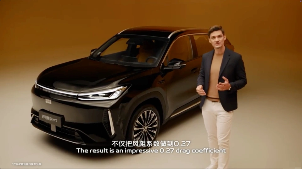这趟“超长旅程”的起点,是一副精致且干练的打扮。银河M7的设计很“吉利”,封闭前脸、贯穿灯带、流畅的车身线条,风阻系数低至0.27Cd,一切都在为跑得更远服务。它没有为了张扬而设计多余的棱角,是一种务实的高级感。