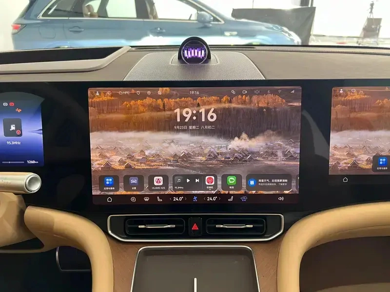 外观内饰不用多吹,5230mm车长、3110mm轴距,块头摆在那儿。三联屏+鸿蒙座舱,流畅得像手机一样顺滑。Nappa真皮、零重力座椅、25单元音响,把"豪华"俩字拆开揉碎了塞进每个细节。后排那个投影,漫反射成像对孩子眼睛友好,宝妈群体直接圈粉。