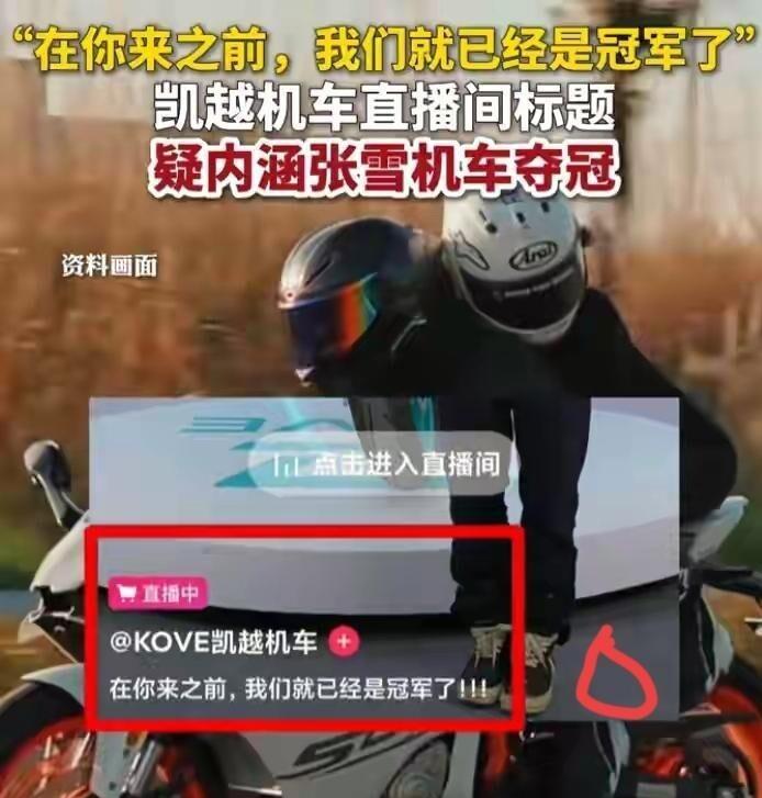 就在张雪夺冠前没几天,前东家凯越机车的直播间里,出现了一个刺眼的标题——“在你来之前,我们就是冠军”。
