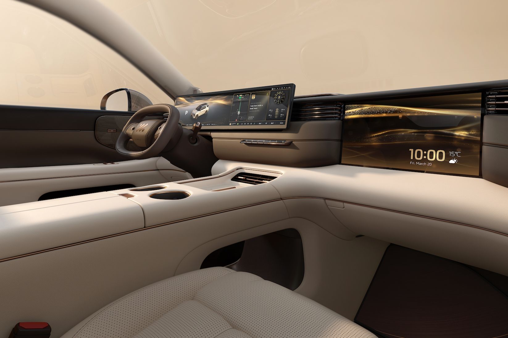 25扬声器的B&O音响系统峰值功率3472W、支持古法经络手法的4D按摩座椅、12.3L双开门冰箱、以及专为北方用户准备的石墨烯地暖。