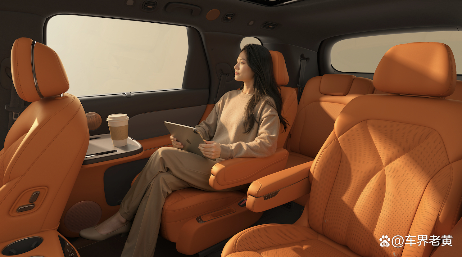 座舱配置则走的是所谓新奢华路线,5座和6座两个版本,6座版的二排配了电动腿托和21.5英寸吸顶娱乐屏,说是商务家用两不误。