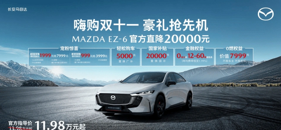11月1号刚上市的2026款马自达EZ-6,11.98万起的价格一出来就炸了锅,这不摆明了要跟小米 SU7掰手腕嘛。作为开了十几年车的老炮,我得好好跟大伙唠唠这款号称 “东瀛宝马” 的新能源轿车到底成色如何。