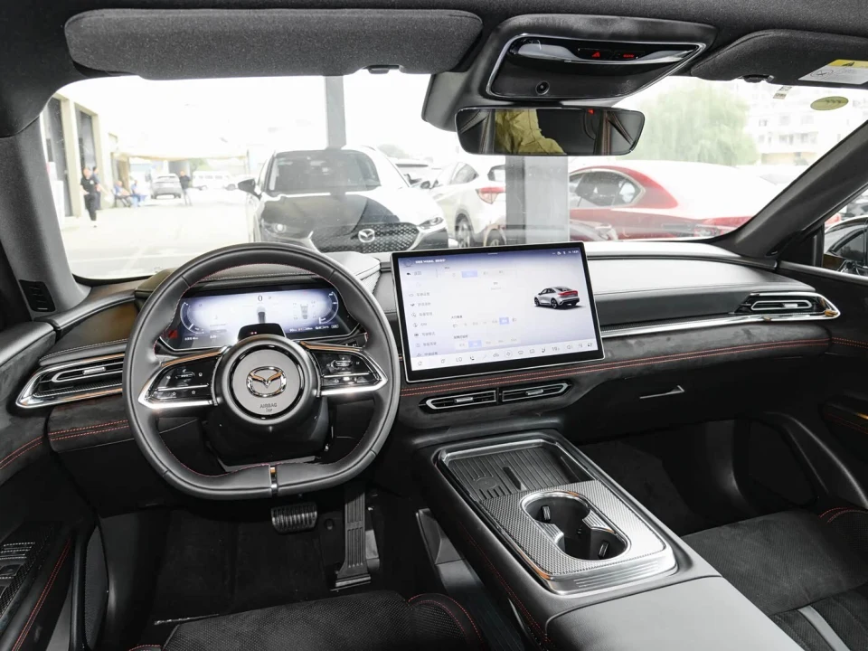 智能配置上马自达EZ-6 有 8155 芯片撑着,四音区语音控制挺灵敏,但车机软件少,没有 CarPlay 是个遗憾,这方面小米的生态联动确实更顺手。内饰用了翻毛皮拼接,还有零重力座椅,就是中控塑料件差点意思,细节不如新势力讲究。