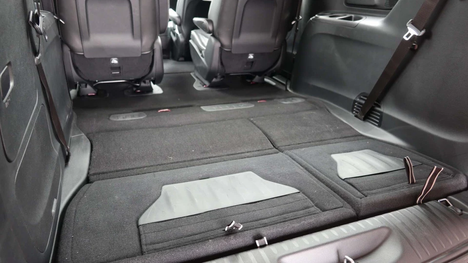 空间灵活性才是Pacifica的真本事。Stow‘n Go座椅折叠系统独步天下,第二排能完全收进地板,第三排电动放倒后后备箱能扩展到140.5立方英尺。满载7人时,第三排之后还有32.3立方英尺空间,放几个登机箱不成问题。车内真空吸尘器、多区独立空调、后座娱乐屏这些细节,确实是美系MPV琢磨透了家庭用户。