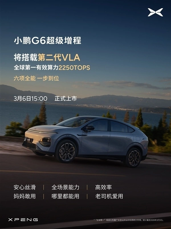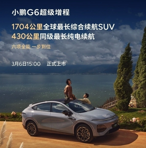 老铁们,20万级新能源SUV市场彻底被搅局了!小鹏G6增程版官宣3月6日正式上市,带着全球最长综合续航、800V架构+5C超充两大杀器而来,官方主打1704km综合续航、325km WLTC纯电续航,网传起售价16.38万起,直接叫板理想L7、问界M7,今天老王就结合实车实测和官方卖点,带大家唠唠这台被称“续航天花板”的SUV,看看它凭啥能刷新同级纪录,能不能在卷王扎堆的市场一路领跑。