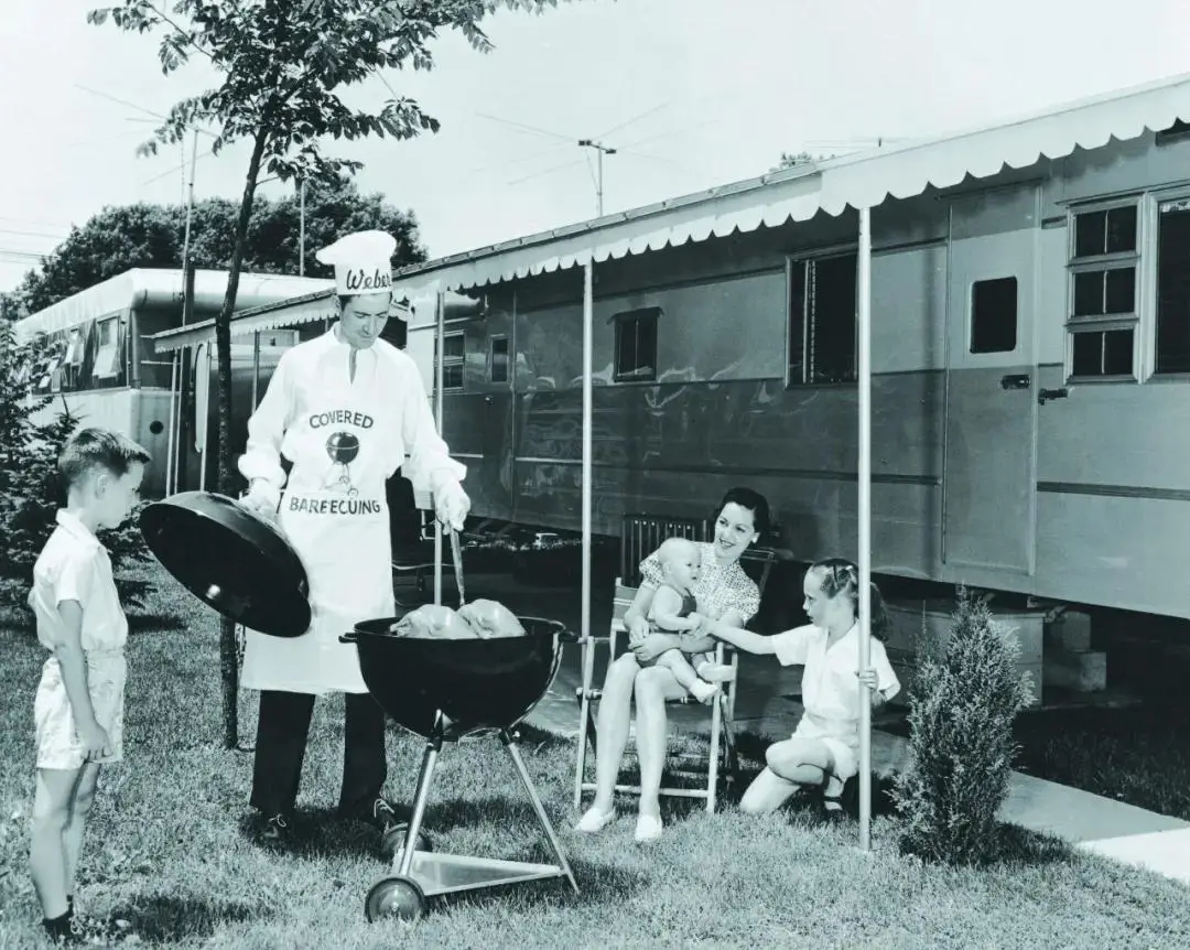 1950年代,得益于生活水平的提高,以及韦伯烧烤炉的发明,许多美国家庭在自家的后院创造了一种全新的烹饪方式:“后院烧烤”。现代式烧烤就此流行起来,演变成美国人聚会中的一种常见的就餐选择。