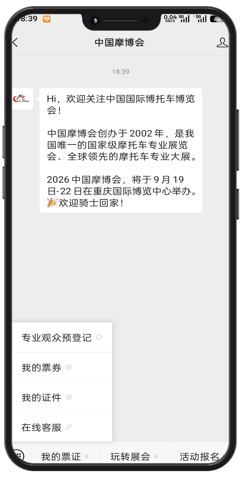 1、微信搜索官方公众号【中国摩博会】或【骑摩托】,或官方小程序【中国摩博会】进行登记;