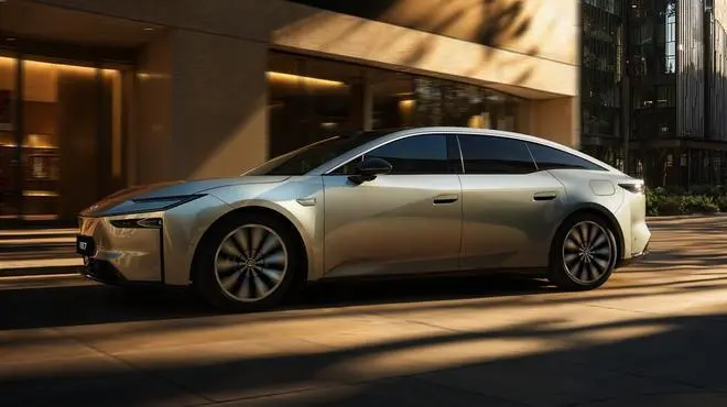 广汽丰田铂智7将于11月21日广州车展公布内饰,定位中大型纯电轿车,由丰田中国工程师团队主导研发,车身尺寸5130*1965*1506mm,轴距3020mm,搭载华为电机系统与中创新航磷酸铁锂电池,提供71.35kWh和88.13kWh两种电池版本,对应CLTC续航600-710km,单电机后驱版最大功率207kW,双电机四驱版零百加速5.1秒,风阻系数低至0.23Cd。
