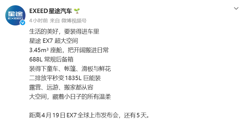 4月19日,奇瑞星途EX7就要来给出答案了。