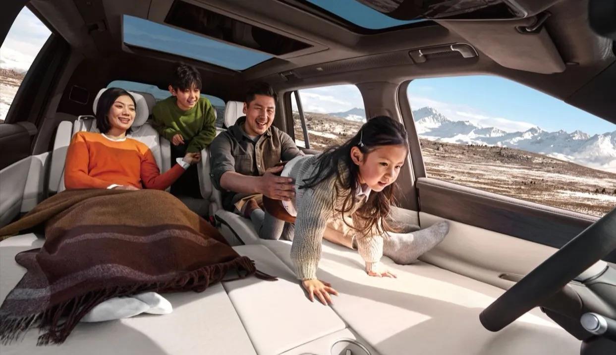 内饰和配置也是诚意拉满。15.6英寸的双联屏,21.4英寸的后排吸顶屏,高通骁龙8295芯片,Nappa真皮座椅,前排和第二排都有零重力座椅,加热通风按摩一应俱全。还有一个特别有意思的东西叫“Smart Surface魔术屏”,关闭的时候跟内饰面板融为一体,点亮了才显示信息,科技感满满。255色氛围灯、HUD抬头显示、车载冰箱、感应尾门,你能想到的配置它基本都给了。就这配置单,拿去跟理想L9比,一点都不虚。