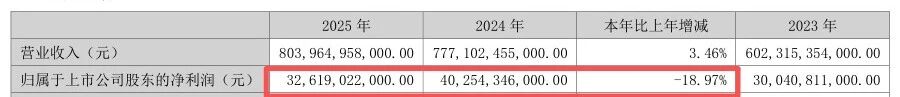 不过在营收增长的同时,比亚迪却出现了赚得更少的情况,而且这个下滑幅度还比较大。在归母净利方面,其2025年只有326.2亿。