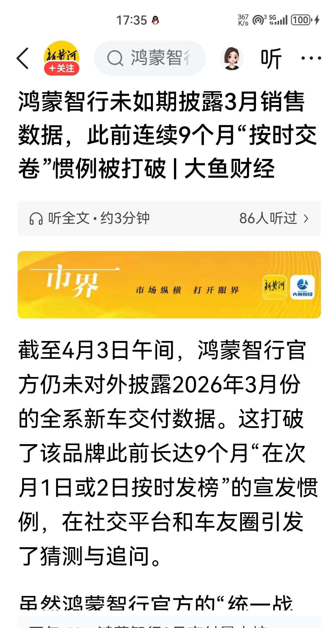 最近车圈有个事挺蹊跷,鸿蒙智行打破以往惯例,就是死活不公布3月销量。以前每个月1号准时晒成绩单,这次装哑巴了。最后还是赛力斯自己扛不住,发了产销快报——3月新能源卖了22706台,同比增长20.74%。看着还行对吧?但你要翻翻1月份的数据,当时可是卖了43034台,这直接腰斩了啊。更扎心的是,人家小米汽车同一天公布3月交付超2万台,雷军还特意强调新一代SU7累计交付已超7000台。大家都在涨,就你问界往回缩,这脸往哪搁?