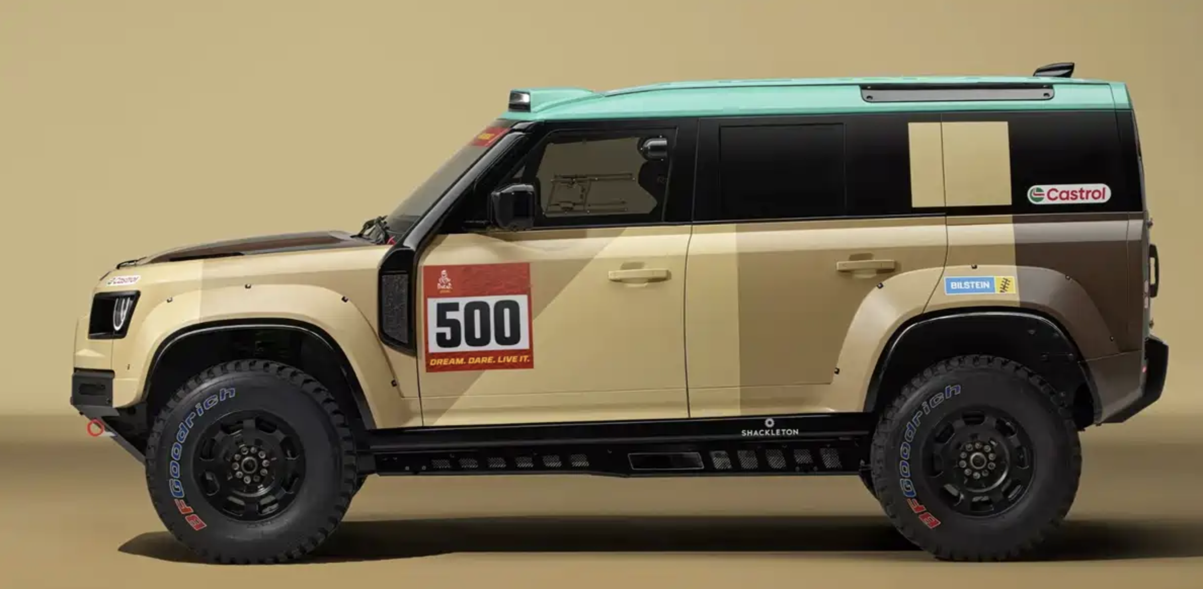 动力方面,新车搭载了经过赛事验证的4.4T双涡轮增压V8发动机,匹配8速自动变速箱。为适应高强度越野赛事需求,路虎对传动比进行了专门调整,并引入了赛车控制单元,能够实时调节扭矩输出,优化车辆在跳跃落地后的姿态稳定性。新车还配备了全新开发的大容量油箱,以应对达喀尔拉力赛特有的超长赛段挑战。