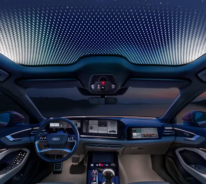 但更妙的是它玩的光影艺术,前后灯组共有16种个性化的灯光签名,晚上解锁车辆,仪式感直接拉满。最让人惊喜的是车内,它竟然给配上了“银河星空顶”。你想想,下班后疲惫地坐进车里,点亮这片星空,是不是瞬间就把日常通勤和浪漫情怀勾连起来了?这恰恰击中了当下年轻消费者的痒点:他们既要张扬个性的设计细节,也看重能提升愉悦感的精致配置。