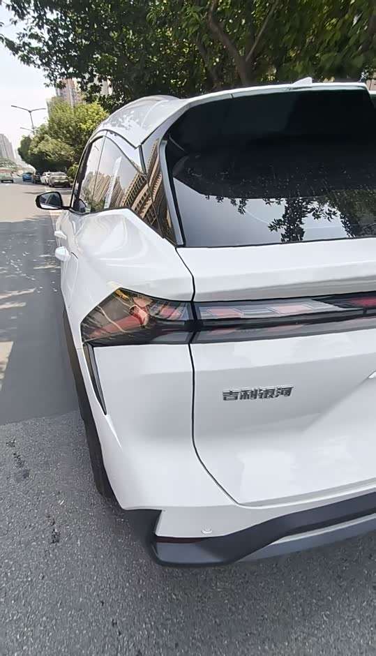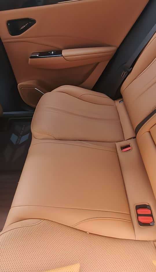提车选白色,纯粹是因为懒,毕竟黑色洗车太频繁,灰色又怕显旧。但银河L7的“白”有点东西,不是那种普通白,阳光下透着点珍珠光泽。车头的封闭式格栅配贯穿灯带,乍一看像未来感的机器人脸。晚上开车灯的时候,灯带一亮,路口等红灯都有小哥摇下车窗问“这啥车,挺帅啊”。车身线条是那种流畅的溜背感,车尾的贯穿尾灯和车头呼应,我这种对外观没太大追求的人,都觉得比同价位的SUV顺眼太多。尤其停在公司楼下,旁边的本田CR-V看着就像个“老人家”,我这台更像个穿白衬衫的精神小伙👔。选棕色内饰是因为看展车时,觉得这个颜色比黑色温馨。提车当天打开车门,居然没有刺鼻的塑料味,只有点淡淡的皮质味道,销售说用的是环保材料,我这种鼻炎患者简直感动。中控台的皮质缝线很细腻,扶手和门板接触的地方都是软包,不像我同事的某国产车,硬塑料摸起来像玩具。中控屏和副驾屏连在一起,看着就高级。唯一小缺点是棕色内饰不耐刮,上次钥匙不小心划了一下,留下一道浅印子,心疼得我赶紧买了防刮垫。