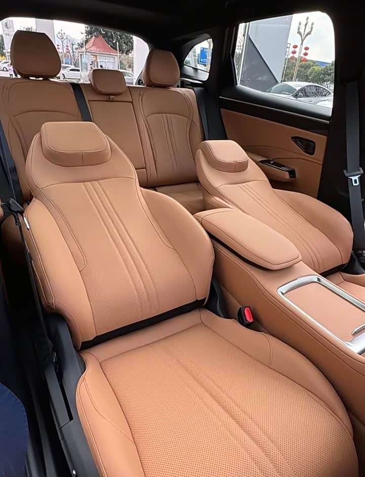 车身做工真心不错,尤其是侧边,肌肉感十足,那个上翘的腰线真好看。车头设计也很棒,半封闭前脸很有特色。车尾造型嘛,有点大胆,哈哈,不过我选黑色,看起来还好点。那个女王座驾功能真的太赞了,家庭和谐就靠它了。以前媳妇坐副驾没事就找茬,现在一上车,通风一开,按摩一按,视频一放,一会就睡着了。空调制冷也快,还能手机控制,提前10分钟打开,上车就舒服了。