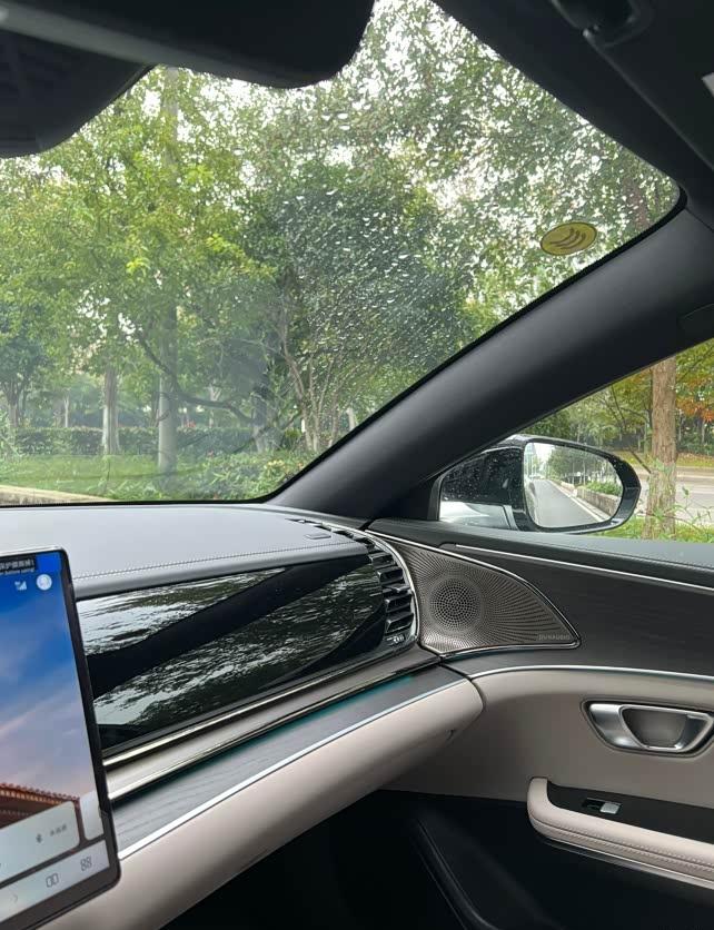 车漆亮得能当镜子照!我选的灰色,洗完车那个光泽度,简直了,感觉比邻居家的雅阁还亮🚗。整体造型低矮运动,像一头趴着的猛兽。日行灯点亮后是两条细长的光带,特别有神,晚上一眼就能认出来。坐进车里,首先就被那个可以旋转的大Pad吸引了,朋友上车都会‘哇’一声,但是这大屏幕真的容易沾指纹,一上车我就得擦一遍,有点小洁癖🧼。内饰用料很足,摸得到的地方都是软的,氛围灯颜色可以选,晚上开车有种在豪华包厢里的感觉。座椅又宽又大,像大沙发,包裹性很好。