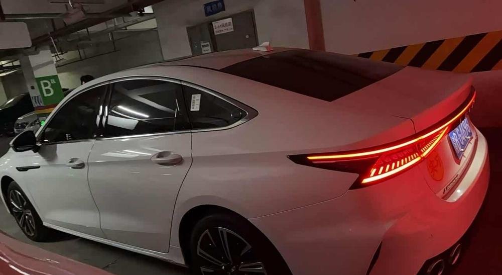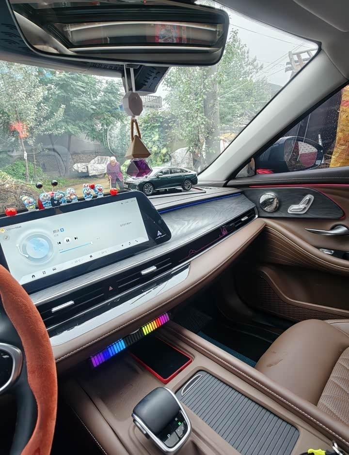 这车属于耐看型的,不浮夸但有辨识度。矩阵式大灯晚上亮起来很精神,日行灯的造型也好看,老远就能认出是这车。溜背造型让车身看起来不臃肿,18寸的轮毂搭配车身比例刚好,不会显得小气。就是车漆有点薄,上次停车被旁边的车开门磕了一下,直接露出了底漆😢。整体风格简约大气,双联屏看着很有科技感,显示也清晰,白天阳光强的时候也能看清。空调出风口是贯穿式的,造型好看,调节风向也方便。车内异味不算大,提车时放了两包竹炭包,一周后基本闻不到味道了。但细节确实有提升空间,比如方向盘上的按键手感偏硬,按下去有点费劲。