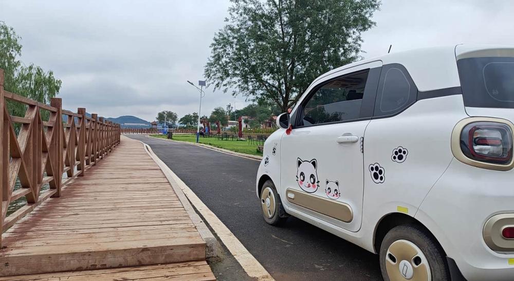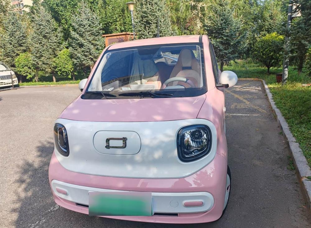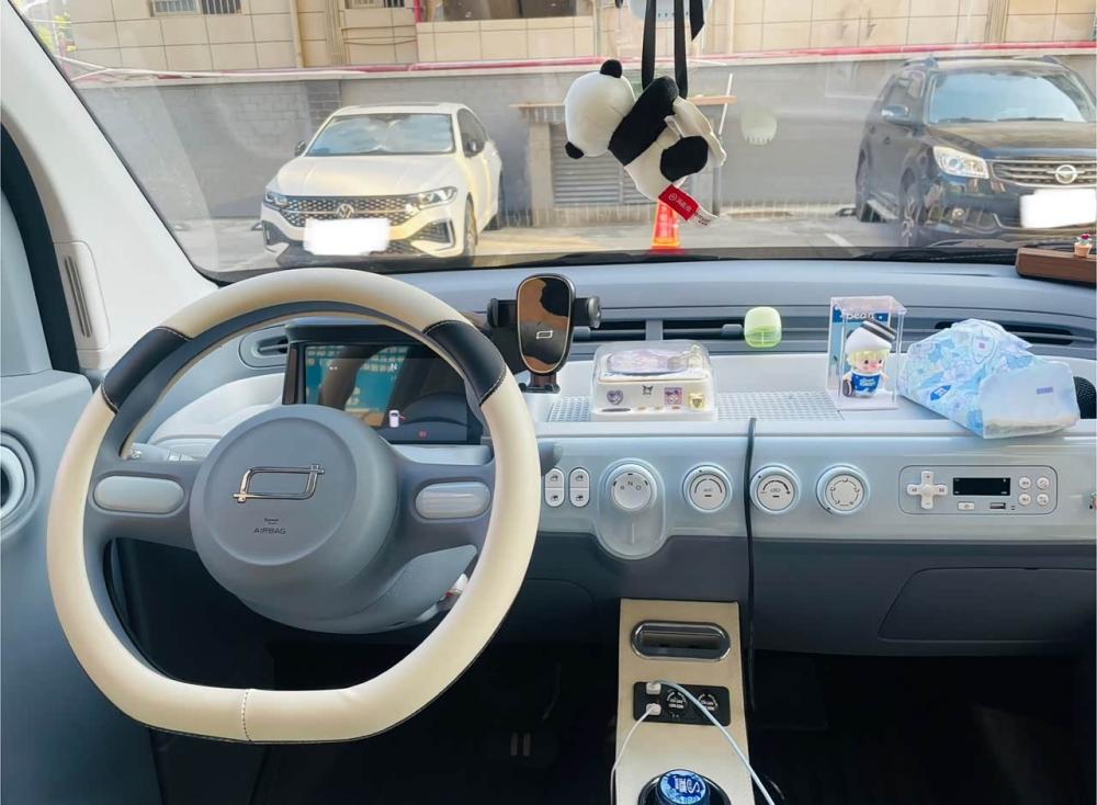 外观就是萌系设计,回头率超高😍!前脸圆形大灯配上微笑式中网,就像一只憨态可掬的小马驹。我选的是全身粉,阳光下特别亮眼,在呼市街头经常被人问车型。轮毂造型也独特,像“风火轮”一样,停车的时候总忍不住多看两眼。就是车漆有点薄,已经有两处轻微划痕了。内饰简约实用,配色清新🌈。双色拼接设计,触感比同级的硬塑料好多了。7英寸液晶仪表显示清晰,但没有转速表(毕竟是电动车嘛)。物理按键布局合理,空调、音量这些常用功能可以盲操。异味控制得也不错,提车一周后车内就没有刺鼻气味了。就是建议增加点USB接口数量,全车才1个。