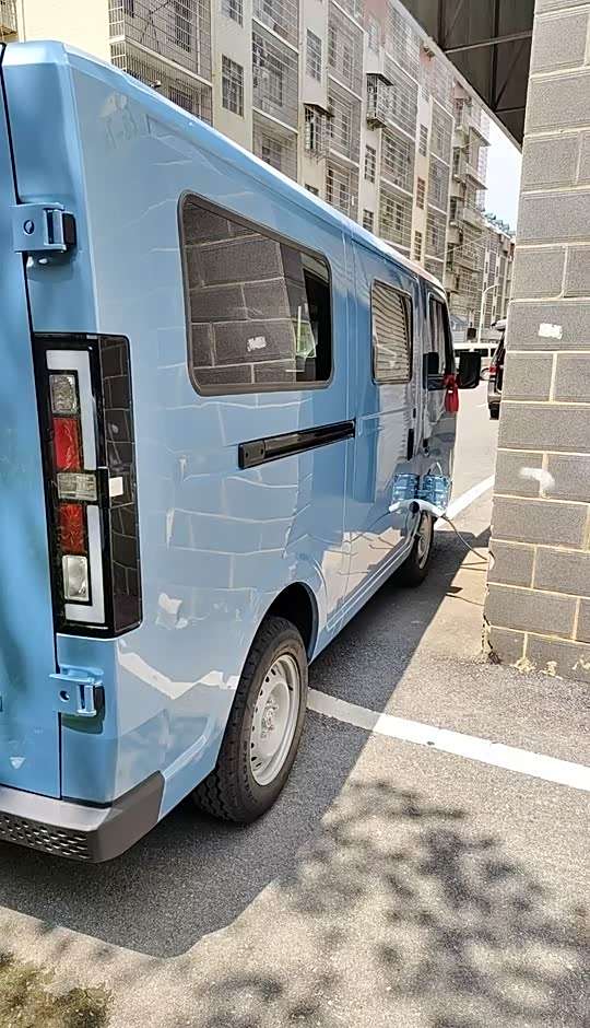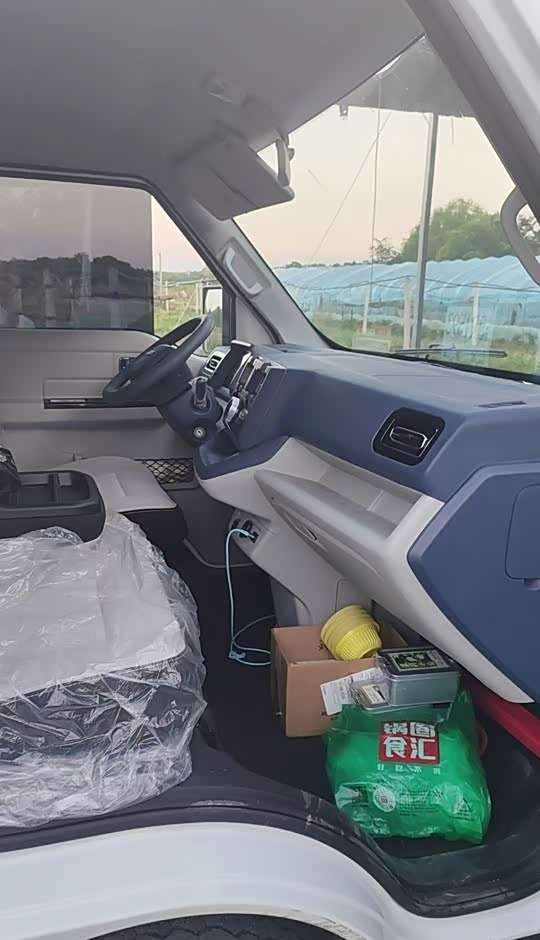 外观方方正正,虽然不是特别好看,但也不难看,挺实用的。这样方正的形状,拉货更方便,空间也大。车子虽然看上去大,但实际上长度只有4米5多,高度也在2米以下,地下车库都能进,不用担心撞顶。前排座椅宽敞,贯通式的设计很方便。后面也有座椅,但平时都是拉货用。仪表台空调的出风口设计成了手机支架,真的很贴心,导航超方便的。