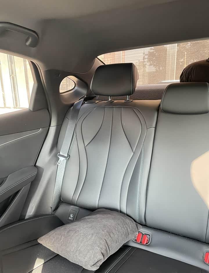 外观真的没话说,就是我喜欢的样子😍!看起来运动又紧凑,还有很明显的电车外观。前大灯是分体式的,好评!看惯了油车的大灯,对一体式的感觉还是不太好看。侧边线条也很简洁,好评!尾灯是波浪设计的,跟主题很契合。座椅用料还可以,开长时间也不会不舒服,可视范围内也都有皮质包裹。就是有些地方用了硬质塑料,不过也能接受。顶棚是黑色布料的,有点压抑。水杯收纳有点影响挂挡,不过也能接受啦。