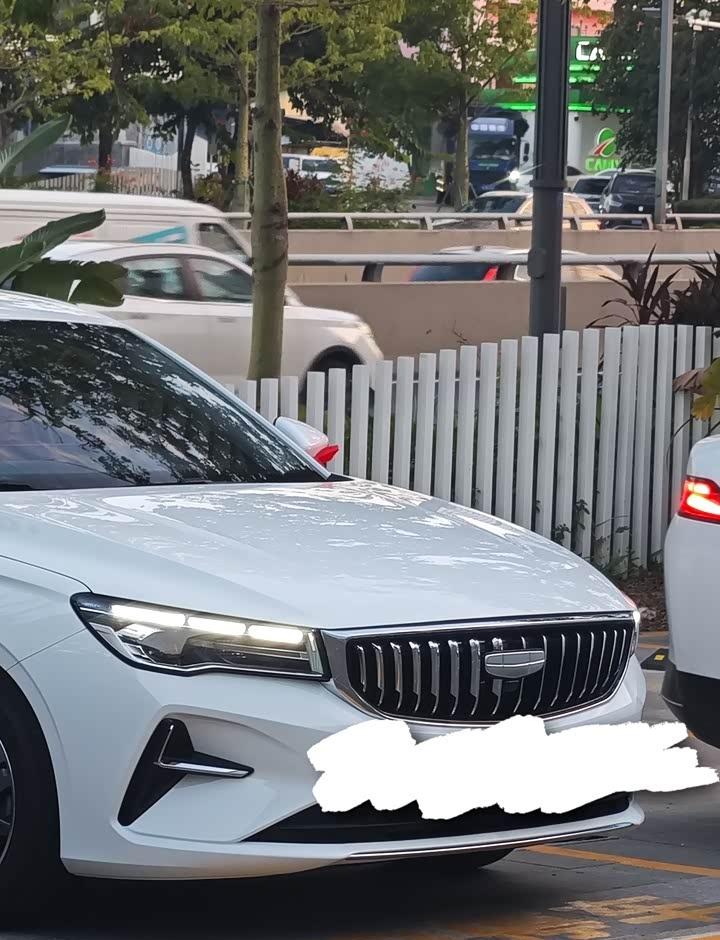 外观我买的白色,感觉好看又大气😍,上班开也不扎眼。我不喜欢太花里胡哨、太个性的。俗话说小车买白色,大车买黑色,白色外观确实大气耐看。吉利新的车标比之前好看太多了,全是银色,之前的蓝黑配色比较俗气,现在的银色颜值就很高。前引擎盖线条流畅,新款的灯也够用。自动挡低配是比较小一点的轮毂,但过减速带时小轮毂还挺好用的。内饰真的颜值很高,整体黑色的,由于内饰太好看了,导致我一度没买到比原车还好看的座椅套,现在还是原车座椅的状态。内饰简单大气又好看,座椅感觉是皮质的,脚踩的原车是绒面的黑色。空调非常给力,降温很快,随时可以语音控制温度、风速等。软硬适中,颈部支撑可以调节,爸妈坐后排一致好评,舒适性高👍。